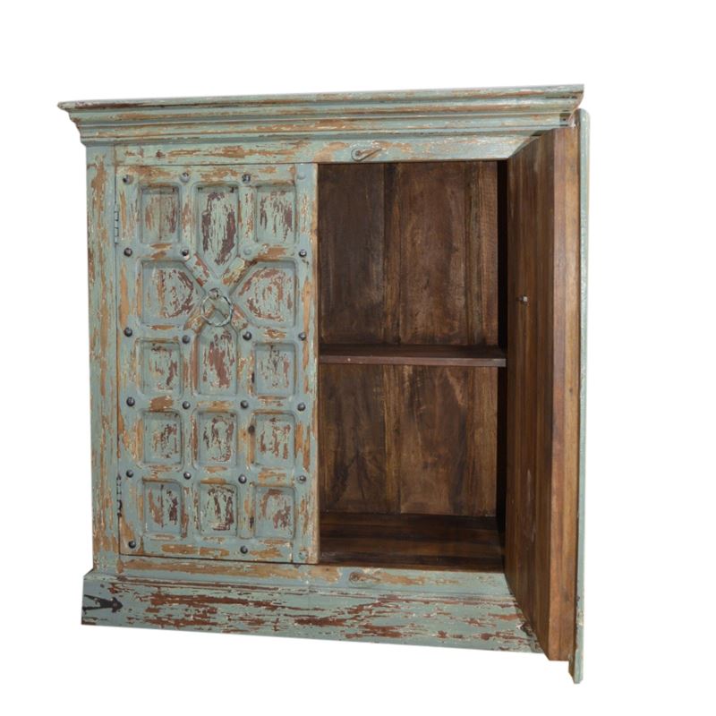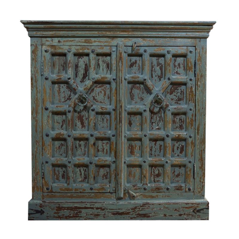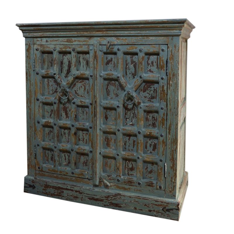 WOODEN PANJABI 2 DOOR CABINET ANTIQUE GREY COLOUR