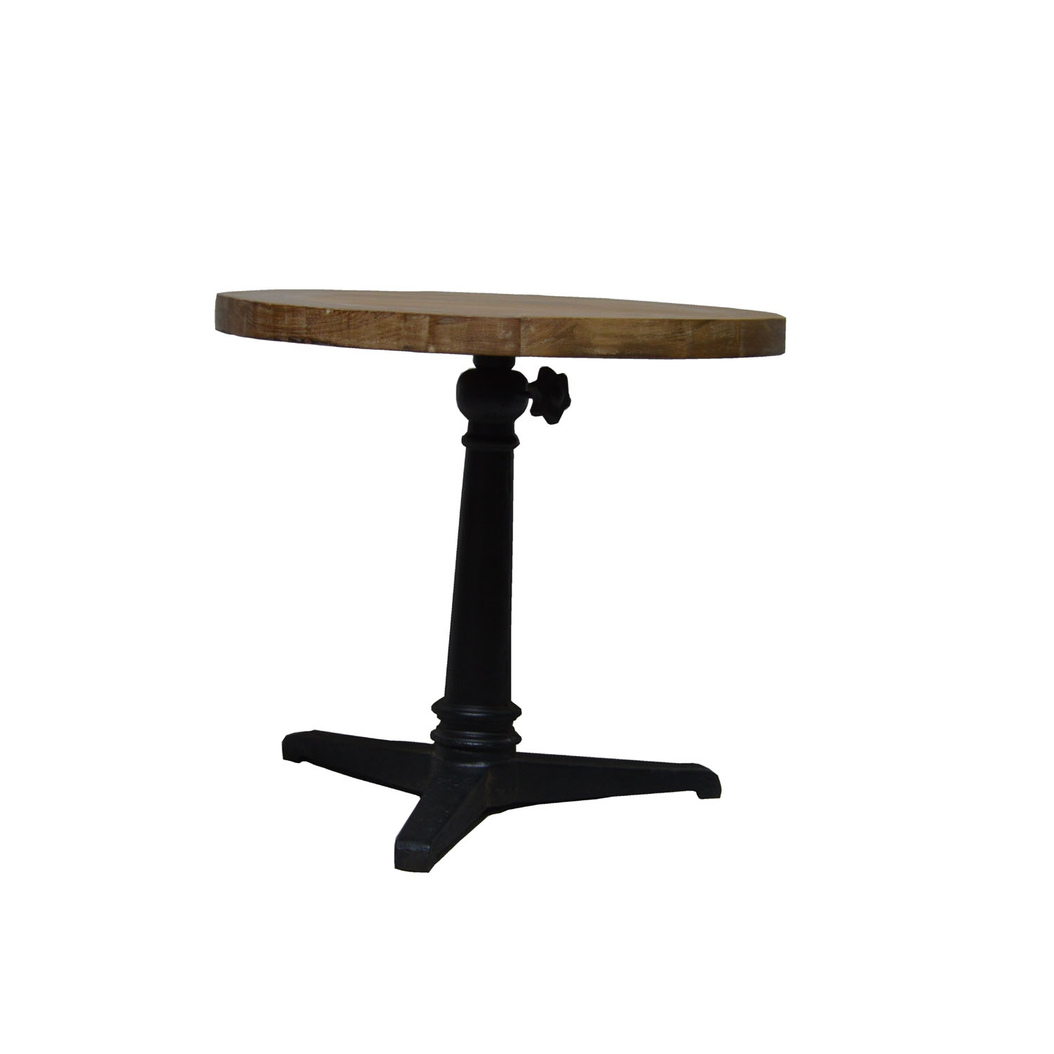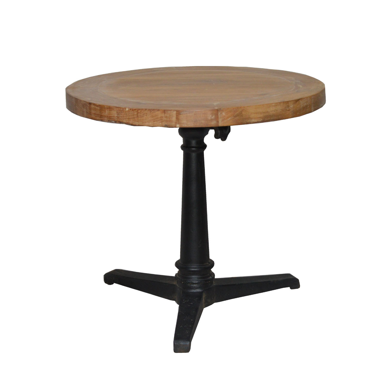 WOODEN ROUND TABLE WITH IRON BASE